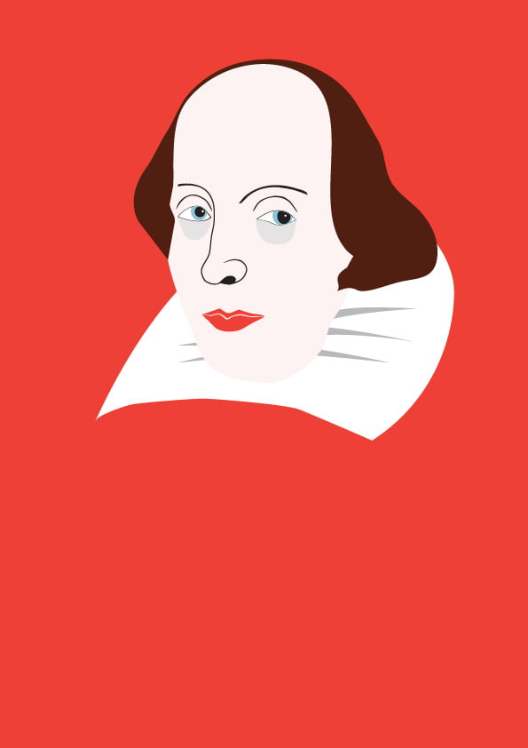 Based on the Droeshout engraving, but stripped right back to his minimal recognisable features. It may actually be possible to take him further back than this, but I like his ruffles. In my mind, apparently, he wear lipstick too. I wonder…