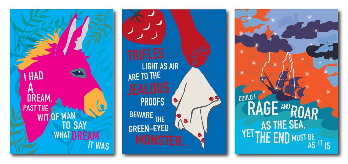 A series of illustrations with inspiration and quotes from Shakespeare plays.
