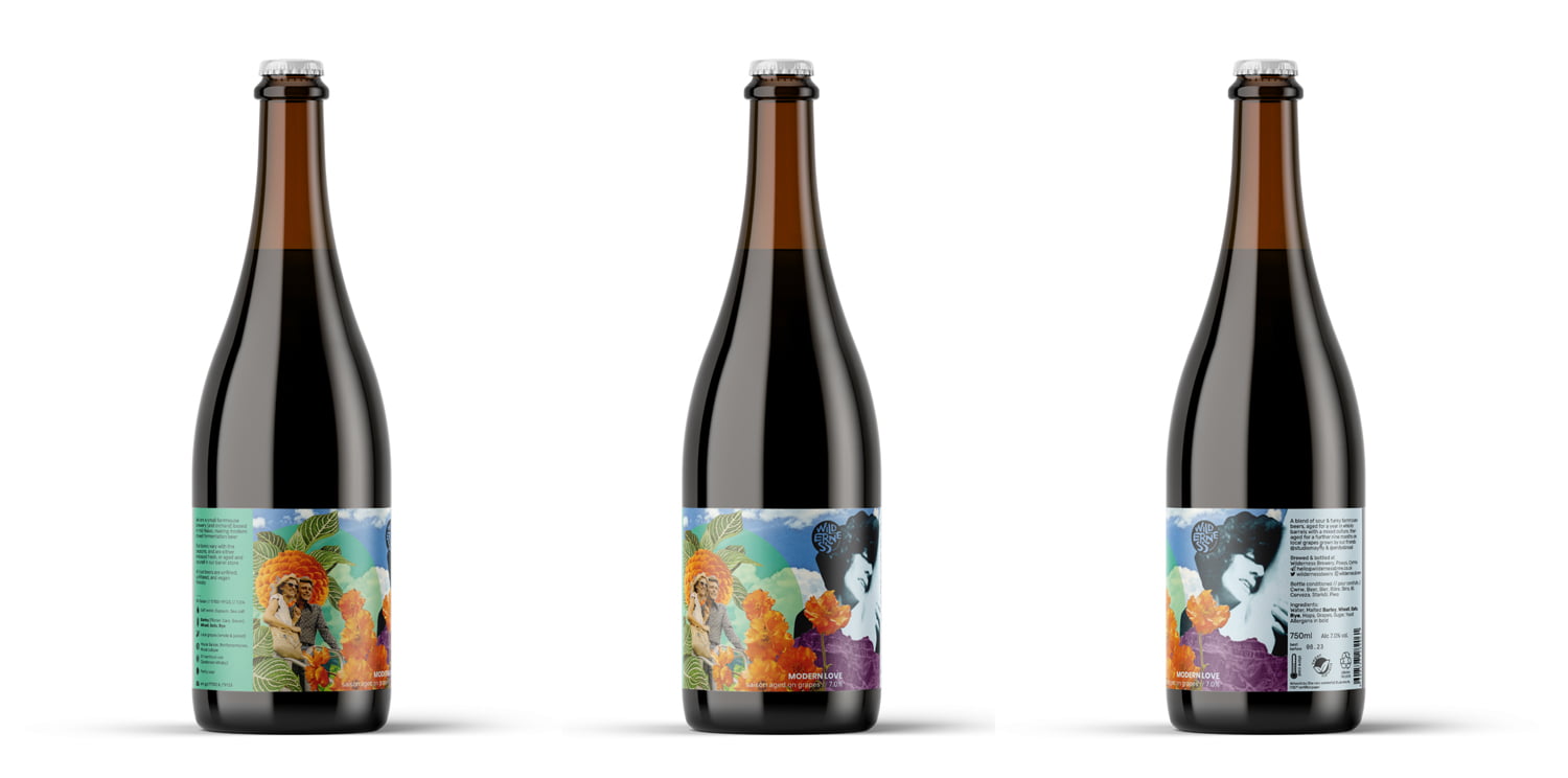 Collage artwork for limited edition craft ale bottle. “Modern Love – hand cut and digital collage.